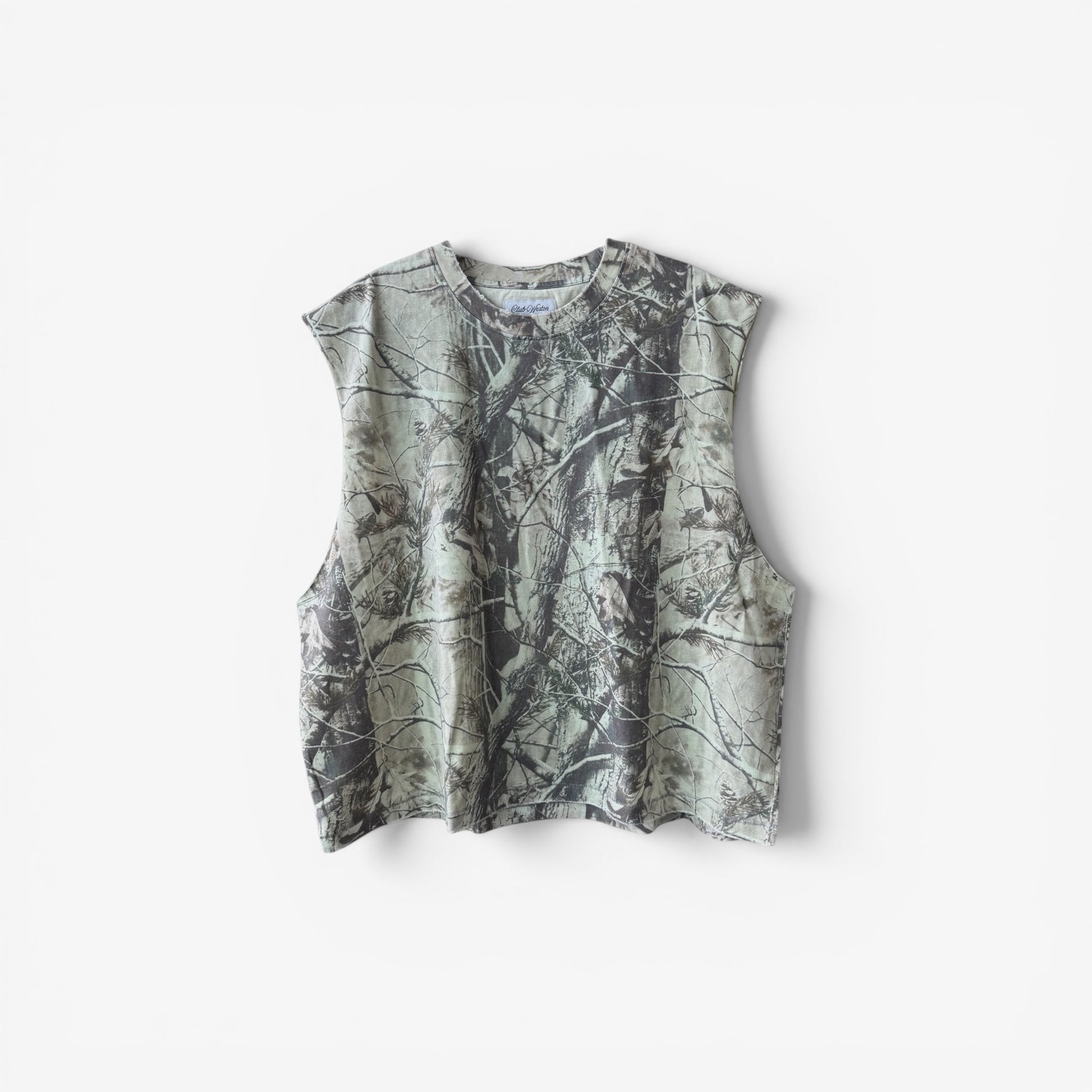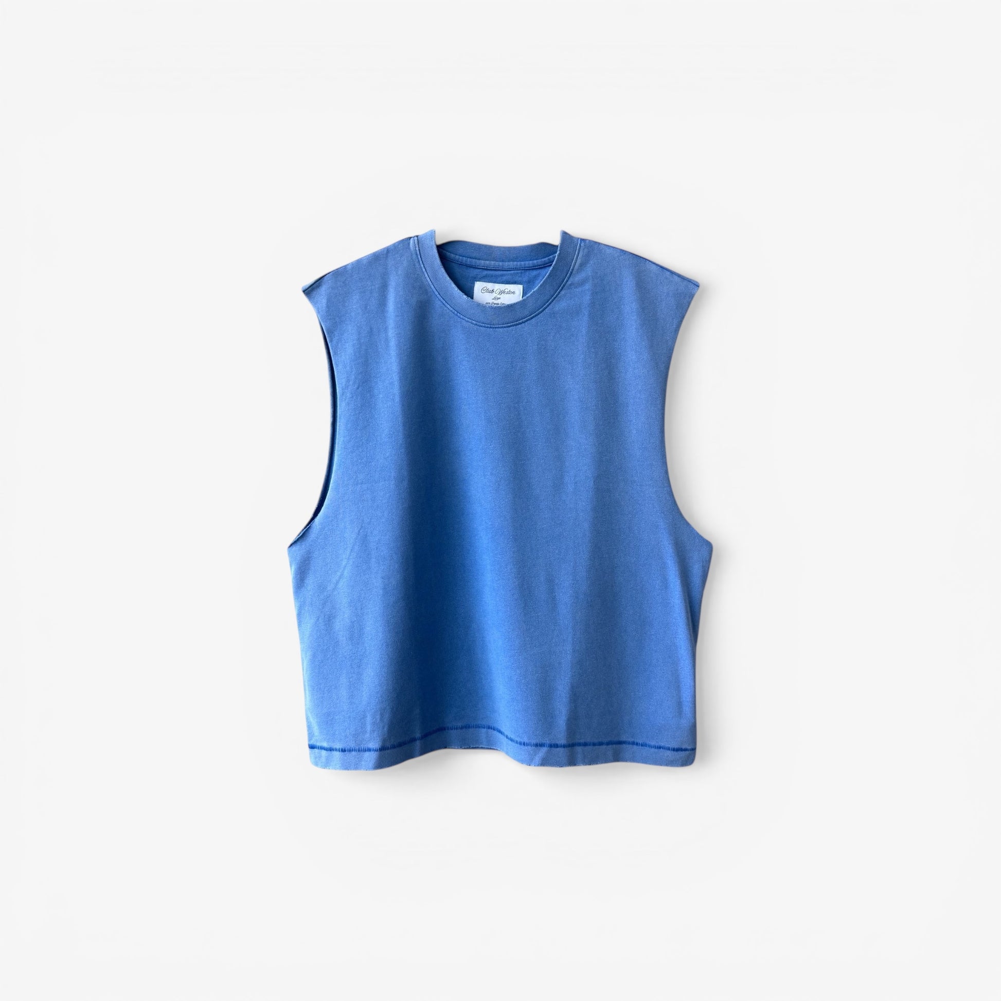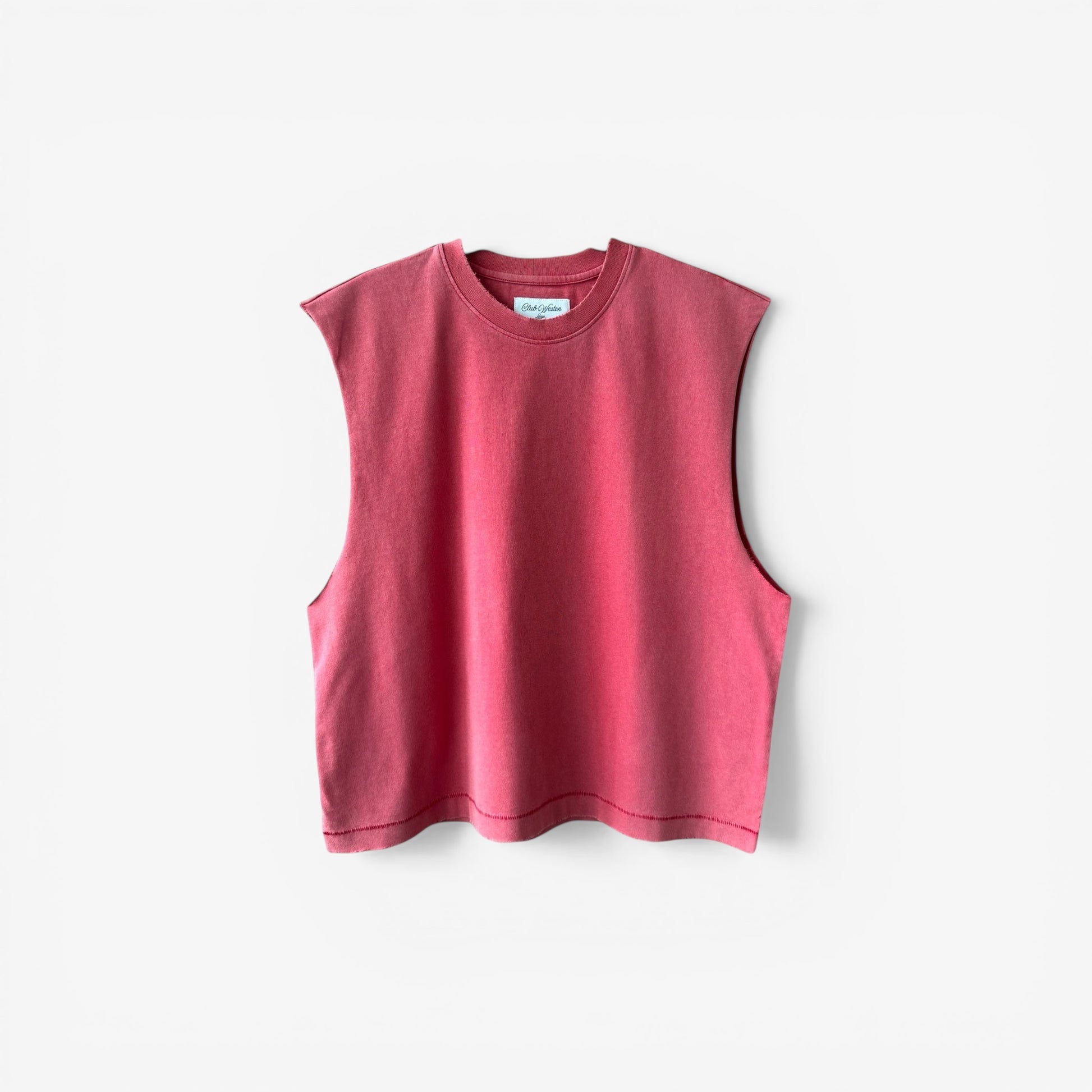 • DISTRESSING ON COLLAR, ARMHOLES AND BODY OPENING